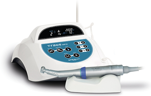 Для машинного способа установки винтов используются физиодиспенсер, оснащенный хирургическим угловым наконечником, и жало для углового наконечника SA-005 (IZ).